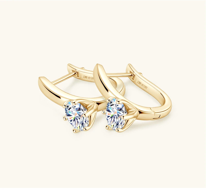 TBCYD مويسانيتي الأطواق أقراط للنساء ، حجر واحد ، 6 مخلب ، على شكل حرف U ، 100 ريال 925 فضة ، 6.5 مللي متر ، D اللون