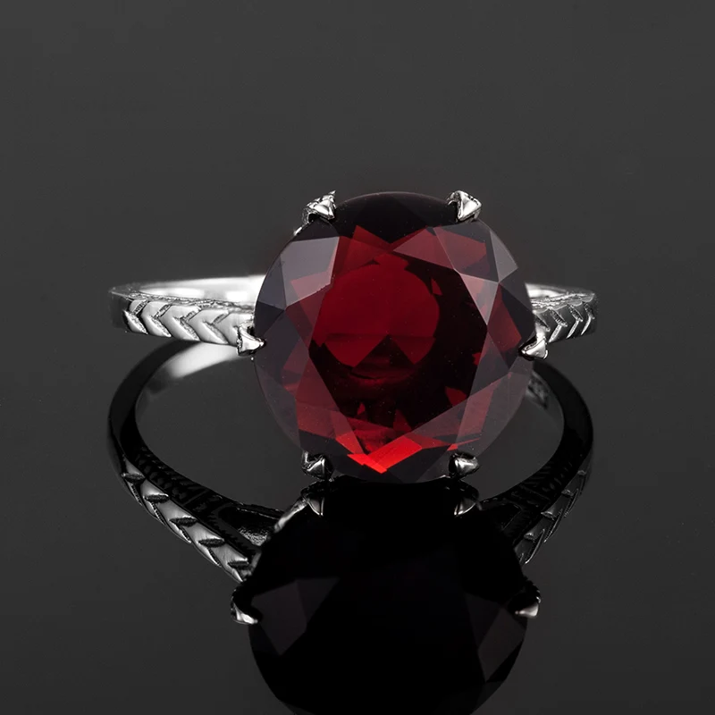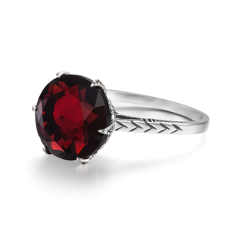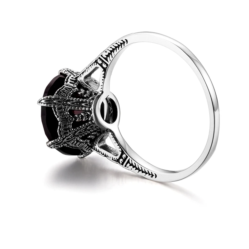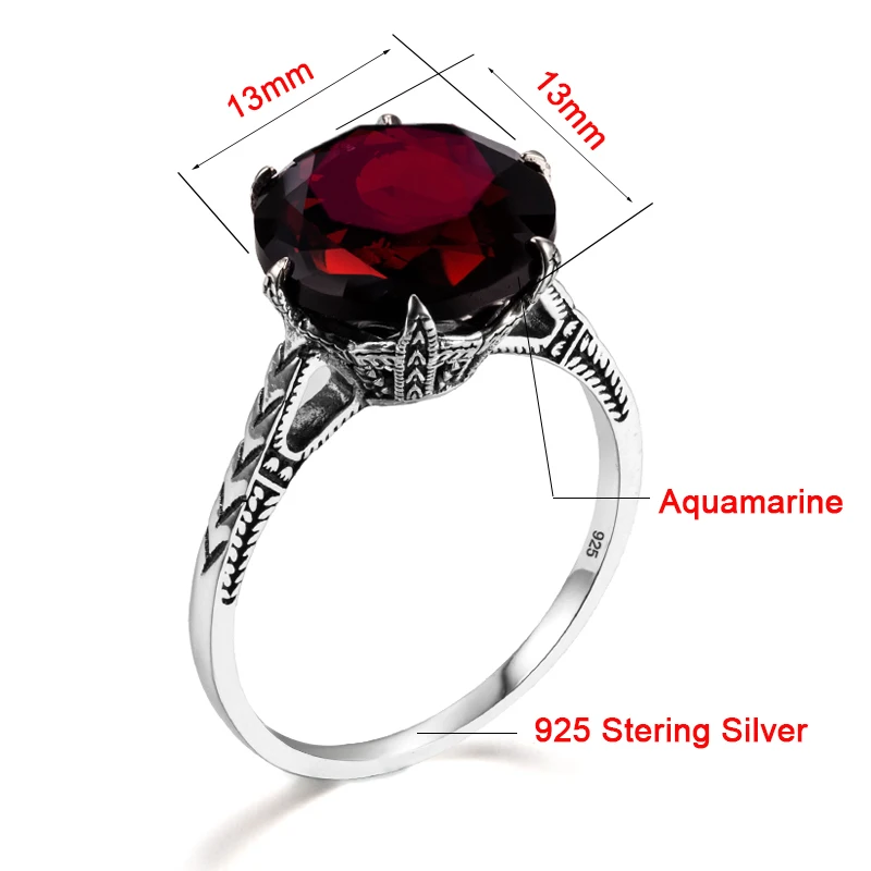 خواتم عقيق أحمر داكن للنساء ، فضة إسترليني حقيقية ، سحر زهور ، مجوهرات خطوبة زفاف علامة تجارية ، هدية ذكرى سنوية